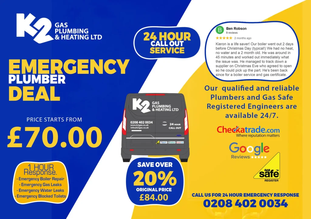 K2 Gas Plumbing and Heating have a local Gas Safe Registered Engineer ready on call 24 hours a day to assist you in your time of need.